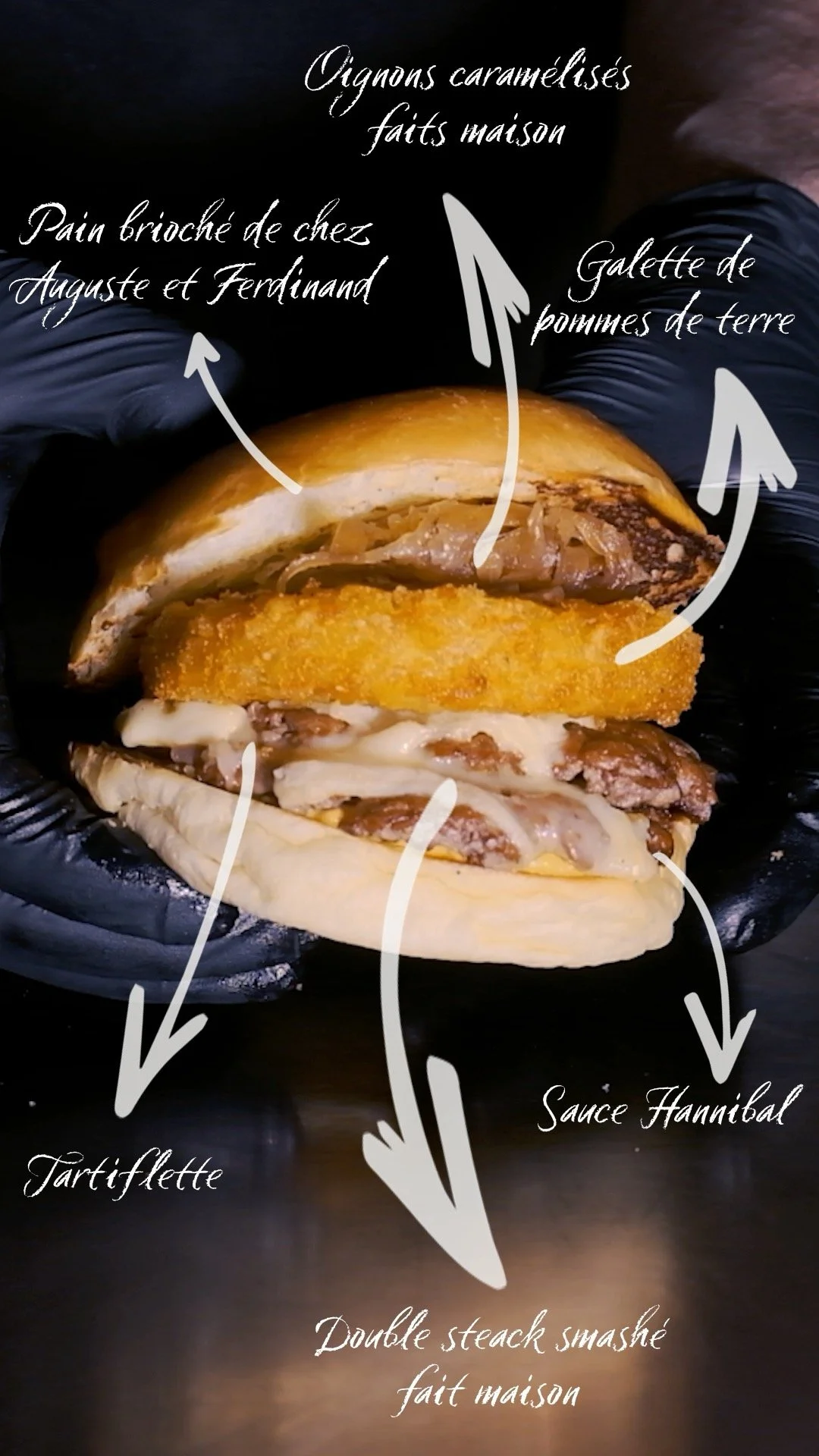 Nous vous proposons une galette végétarienne maison à base de pois chiches à la place du bœuf haché.